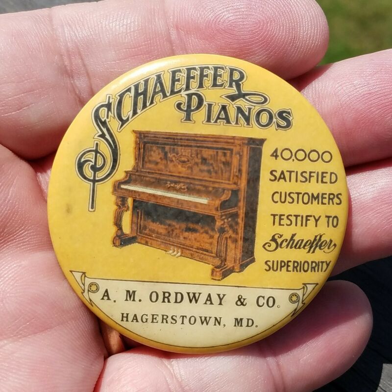 Antique Celluloid Pocket Mirror Schaeffer Pianos Hagerstown Md