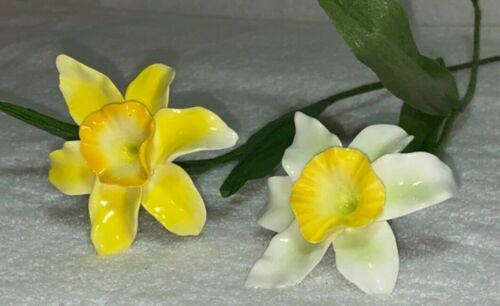 Vintage Ceramic Porcelain China Flower Capodimonte Style DAFFODIL Stem Set of 2