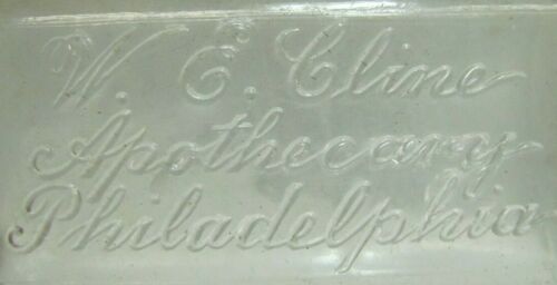 Title (ebay affiliate link): W E CLINE APOTHECARY PHILADELPHIA ANTIQUE GLASS MEDICINE BOTTLE PA EMBOSSED *SJD