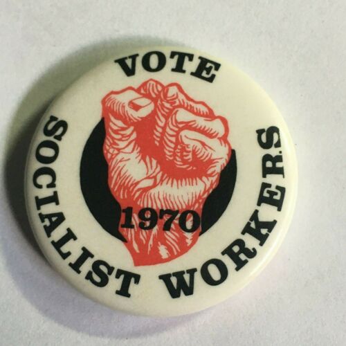 Title (ebay affiliate link): Original "VOTE SOCIALIST WORKERS 1970" Red Fist pinback button--1 1/2 in