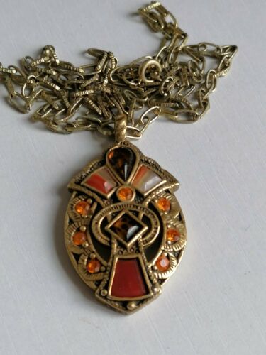 VINTAGE JEWELLERY MIRACLE SCOTTISH OVAL FAN PENDANT NECKLACE PEWTER