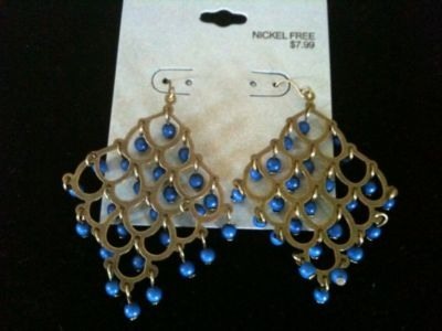 Antique Bronze Blue Chandelier Earrings 2.75" Drop