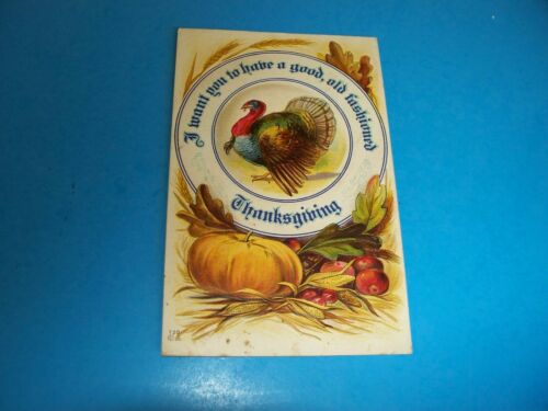 Vintage Antique Postcard THANKSGIVING turkey pumpkin posted