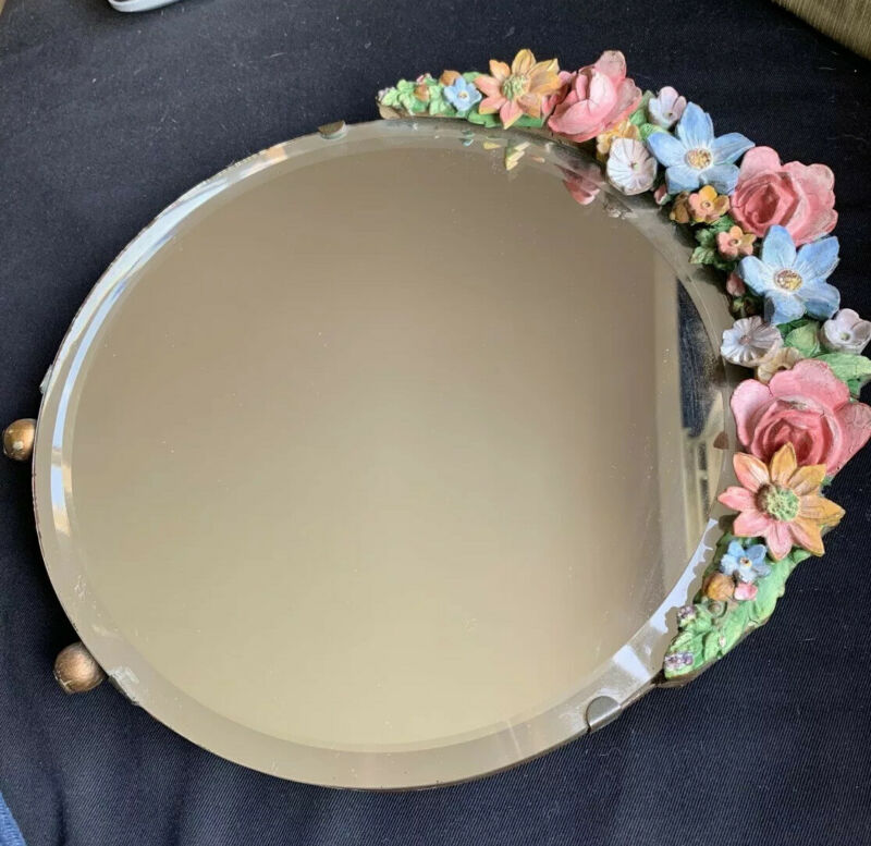 Title (ebay affiliate link): Vintage Barbola Flowers Gesso Round Beveled Dressing Table Mirror