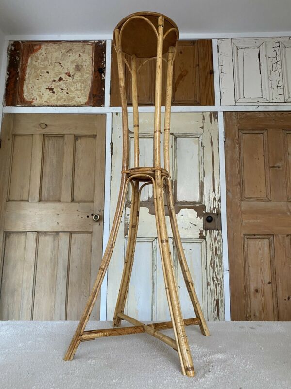 Vintage Boho Tiki Bamboo Plant Stand Torchere