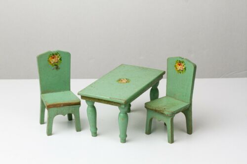 Title (ebay affiliate link): Vintage Antique Dollhouse Furniture Strombecker Green Table & Chairs Lot 1:12