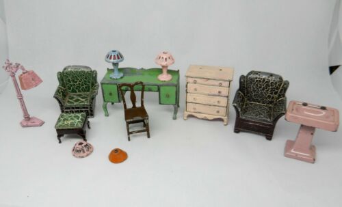 Vintage TootsieToy Dollhouse Furniture Lot Chair Table Lamps Sink