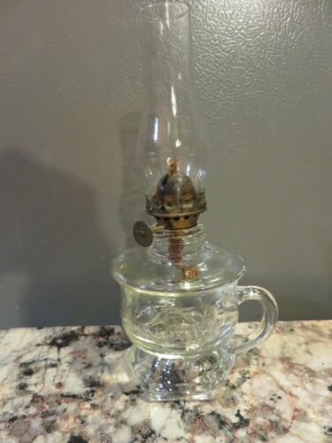 ANTIQUE VINTAGE MINIATURE FINGER OIL LAMP GLASS LITTLE JEWEL P&A ACORN BURNER