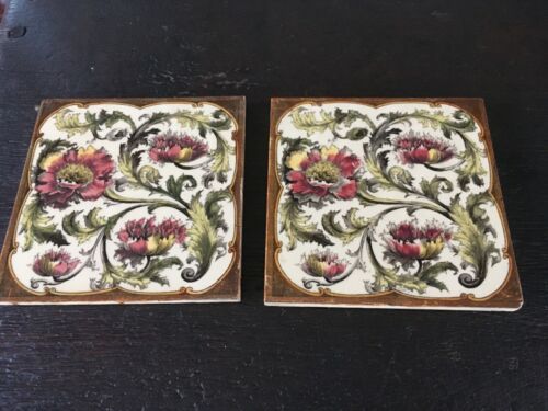 Title (ebay affiliate link): Two Vintage Antique Aesthetic Decorative Floral Art tiles 6 x 6 Inches