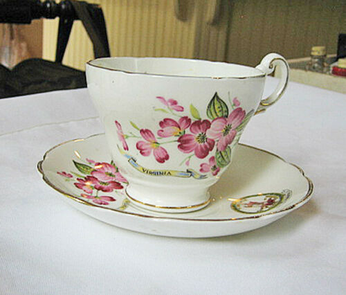 vintage CUP & SAUCER W/ VIRGINIA''S SEAL & STATE FLOWER--DOGWOODS-REGENCY CHINA