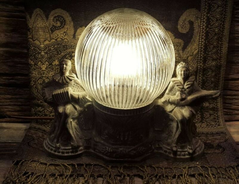 Lamp - 1930s Spelter Harlequin Pierrot Pixie Musicians
