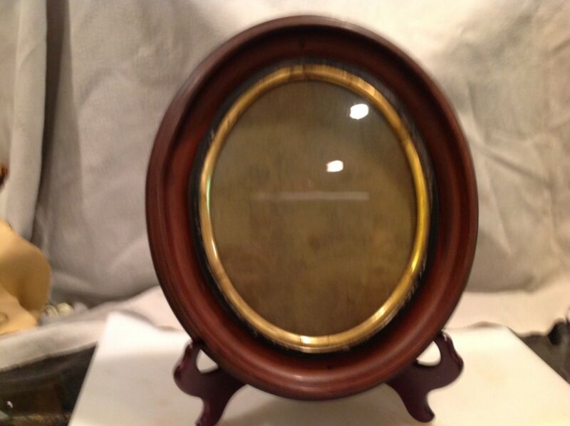 Vintage Oval Wood Picture Frame gold rim 9 x 10 inches 1" molding with glass