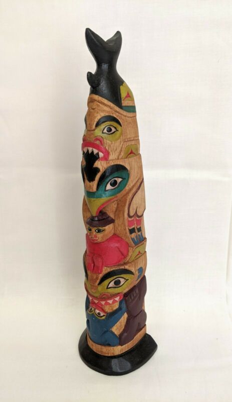 Vintage Hand Carved Wood Alaska Whale Fin Totem Pole