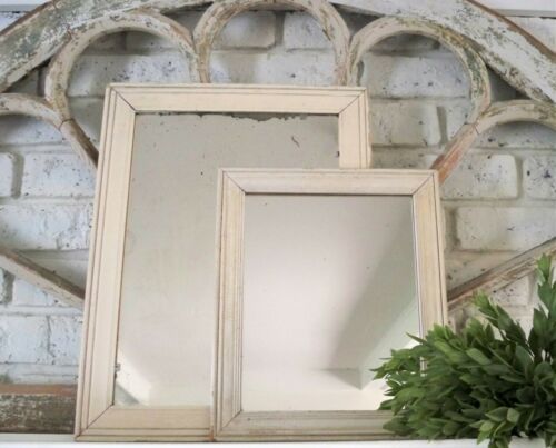 2 Vintage FARMHOUSE MIRRORs Old Chippy Shabby WHITE Paint Rustic Wood Frames
