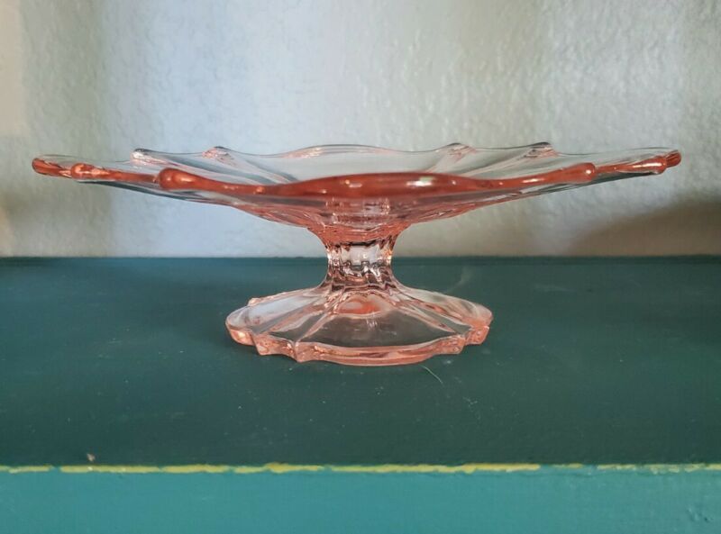 7" Pink Vintage Depression Indiana Glass Pedestal Cake Stand
