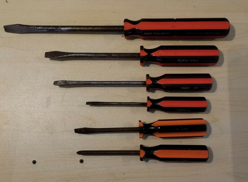 Vintage ROSCO Screwdriver 6 Pc. Set, Tool Steel USA Made, Two Fister NO Reserve