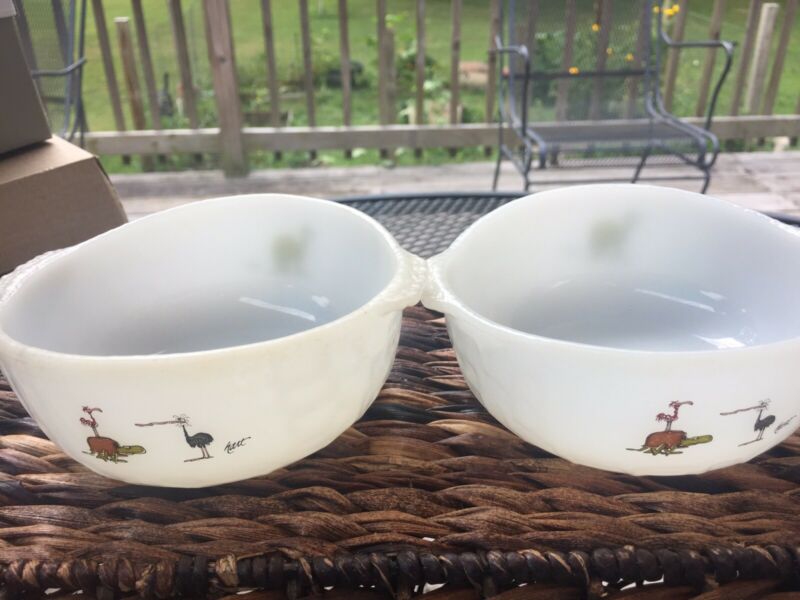 LOT OF ANCHOR HOCKING FIRE KING MILK GLASS BC HART COMIC 2 Cereal Bowls