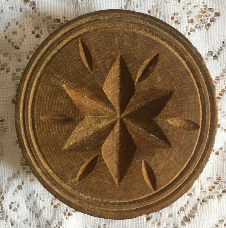 Title (ebay affiliate link): Antique Vintage Wooden Star Butter Press Mold Country Kitchen