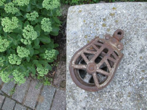 Antique Small Vintage Farm Collectible Rope Pulley With Swivel! Look !