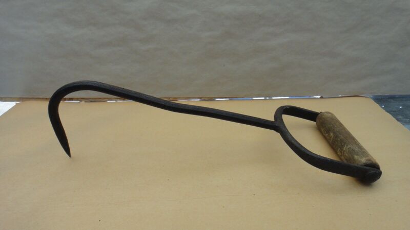 VINTAGE Iron Pick/Farm,Barn Tool/Ice,Straw,Hay,Bail,Meat Hook With Wooden Handle