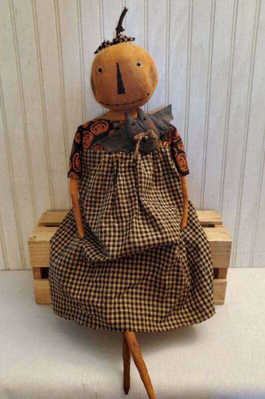 Title (ebay affiliate link): Primitive Grungy Pumpkin Lady Halloween Doll & Her Spooky Bat