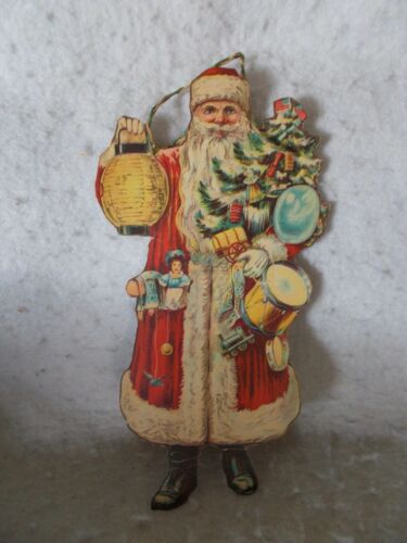 ANTIQUE THIN CARDBOARD SANTA ORNAMENT-AS FOUND