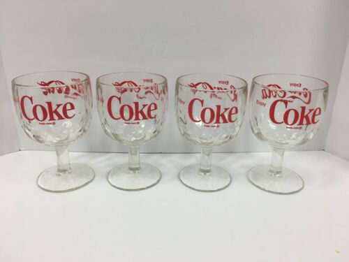Title (ebay affiliate link): Set of 4 1970''s Coca Cola Coke Thumbprint Goblet Stemmed Glasses