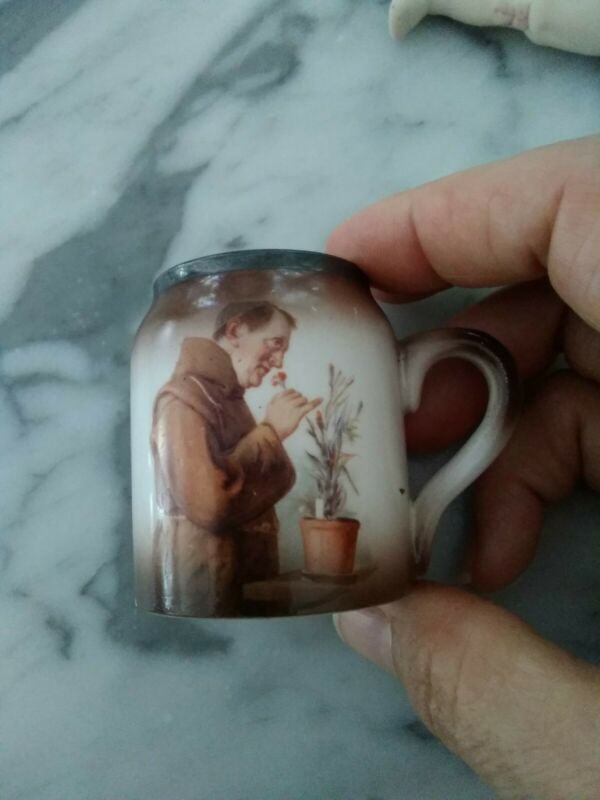 Title (ebay affiliate link): Small Miniature Monk Friar Mug Pottery Porcelain, turned bottom, smelling flower