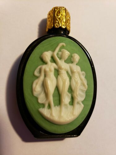 Title (ebay affiliate link): VINTAGE PERFUME BOTTLE SIRENS/GODDESSES IN RELIEF- GREEN BACKGROUND-AUSTRIA