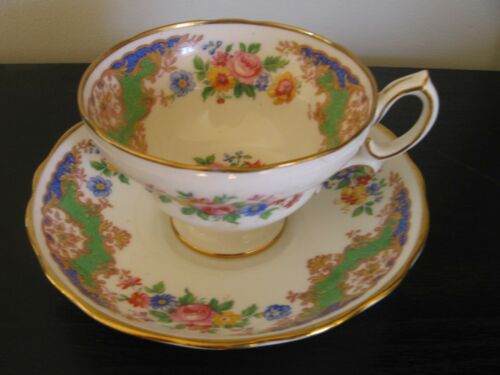 HAMMERLSEY PEDESTAL GREEN FLORAL TEA CUP AND SAUCER