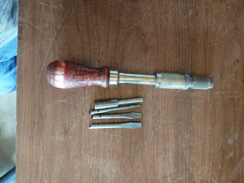 Title (ebay affiliate link): VINTAGE MILLERS FALLS NO. 61A SPIRAL RATCHET YANKEE SCREWDRIVER W/ FLATHEAD BITS
