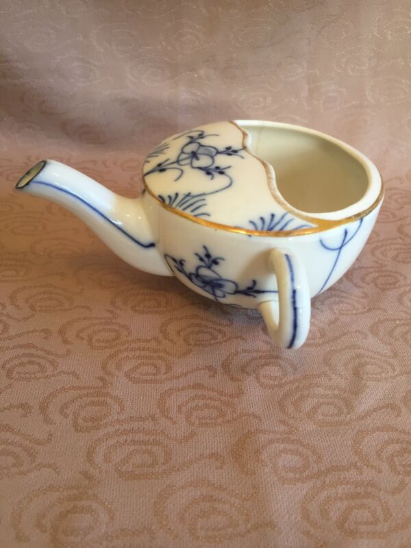 Antique Victorian Porcelain Invalid Childs Feeder Blue Onion Gold Trim Germany