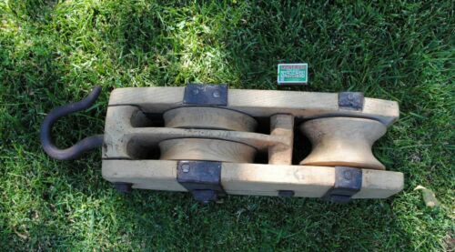 Wood Block /Tackle Enormous Block Nautical Ship, Farm, Industrial, wood wheels