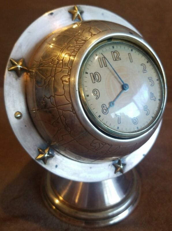 Antique Brass Globe LUX Mfg. Co Wind Up Clock
