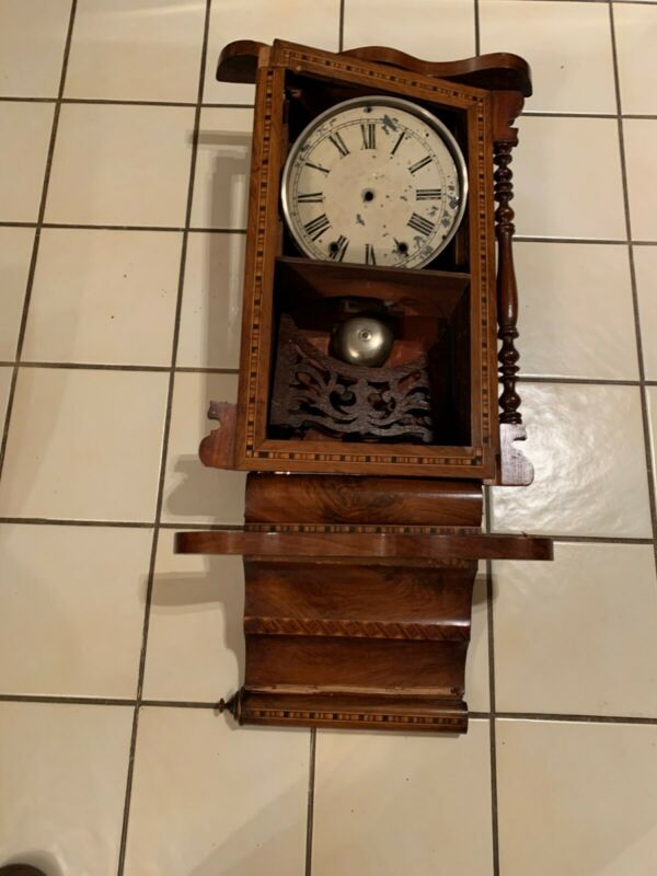 Inlaid Wood Antique Pre-1900 Wall Clock for Parts