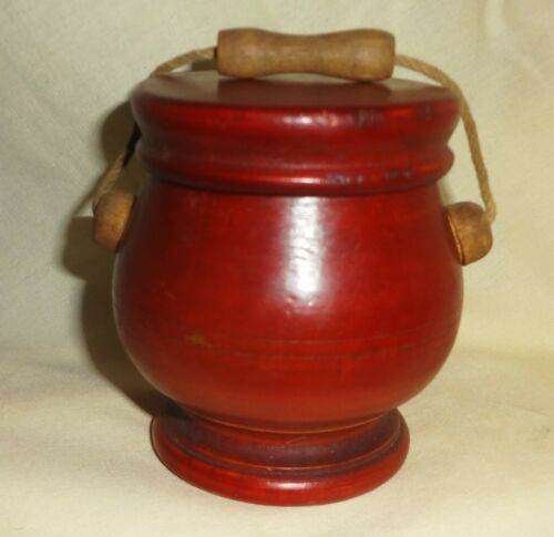 Title (ebay affiliate link): VRARE 19thC small BUTTERMILK painted TREEN LIDDED pail POT BOX-COMPLETE w/HANDLE