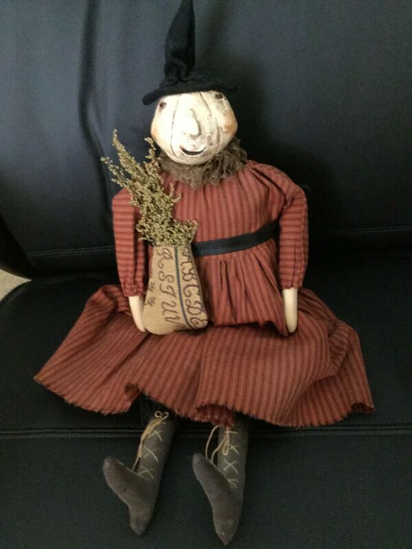 Title (ebay affiliate link): PRIMITIVE HANDMADE CLOTH HALLOWEEN PUMPKIN DOLL - ARTIST MADE