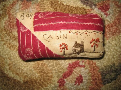 Title (ebay affiliate link): Primitive tiny Sampler Pillow~1849 Old Cabin in The Fall~Early Quilt~ Folk Art
