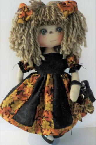 PRIM ART DOLL Raggedy Ann Doll "LORRAINE" SPARKLING LEAF DRESS WITH WREATH