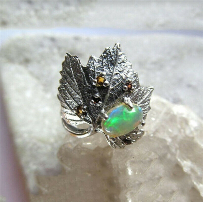 Title (ebay affiliate link): Antique Silver Leaves Artificial Opal Anniversary Engagement Jewelry Size 9#