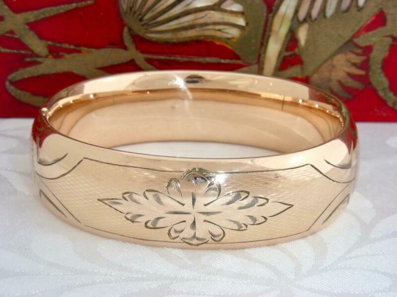 WIDE 3/4" C1910 ANTIQUE 10K ROSE GOLD GF BANGLE BRACELET ENGRAVED ON BOTH SIDES