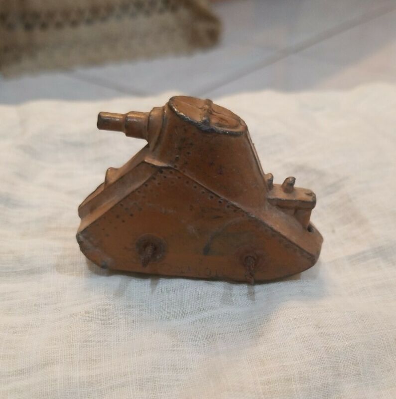 Title (ebay affiliate link): Vintage MANOIL WWI Era Child''s Army Tank Toy Cast iron missing Wheels