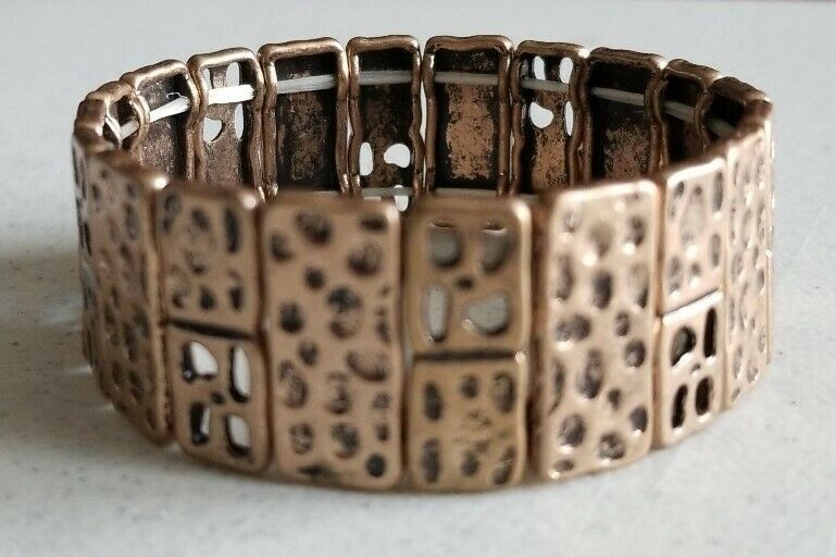 Title (ebay affiliate link): Antique Burnished Gold Tone Textured Block Stretch Bangle Bracelet