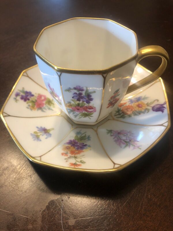 Vintage Limoges France Demitasse Floral with Gold Trim