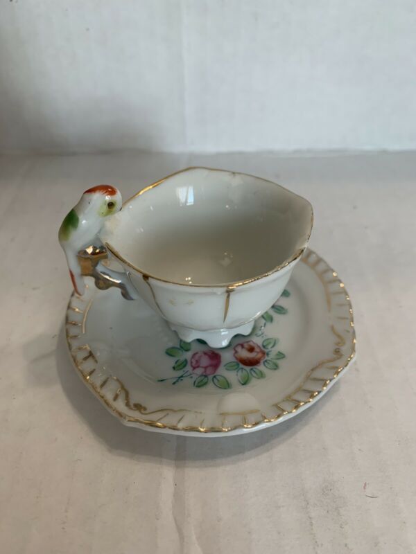 Miniature Teacup And Saucer With Parrot Handle