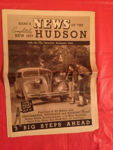 Title (ebay affiliate link): 1937 Hudson "HERE''S NEWS OF THE COMPLETELY NEW 1937 HUDSON" Car Dealer Brochure