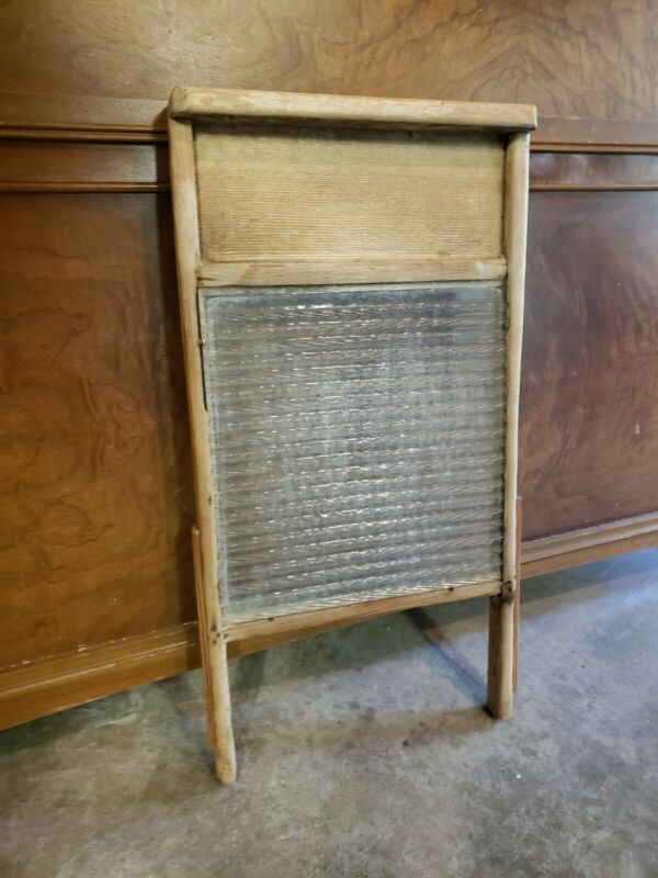 Vintage Glass & Wood Washboard 18"x 8.5"