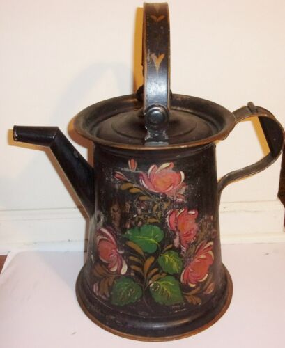 Title (ebay affiliate link): ANTIQUE Tole Painted BENT SPOUT Coffee Pot C: 1800s