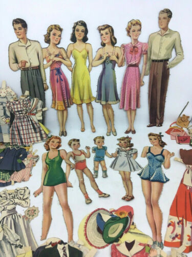 Title (ebay affiliate link): Vintage 1940s PAPERDOLLS Men Women And Kids TONS OF CLOTHES