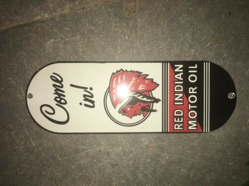 Title (ebay affiliate link): Red Indian Motor Oil PORCELAIN ENAMEL SIGN 12 X 4 INCHES